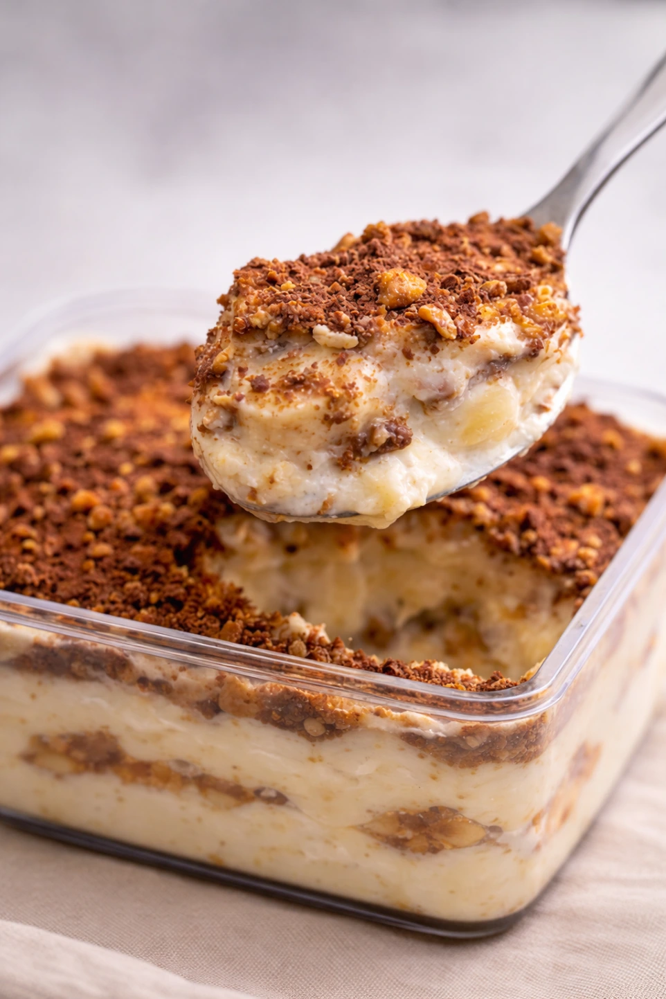 A creamy banana pudding layered with our signature base and light hints of tiramisu.